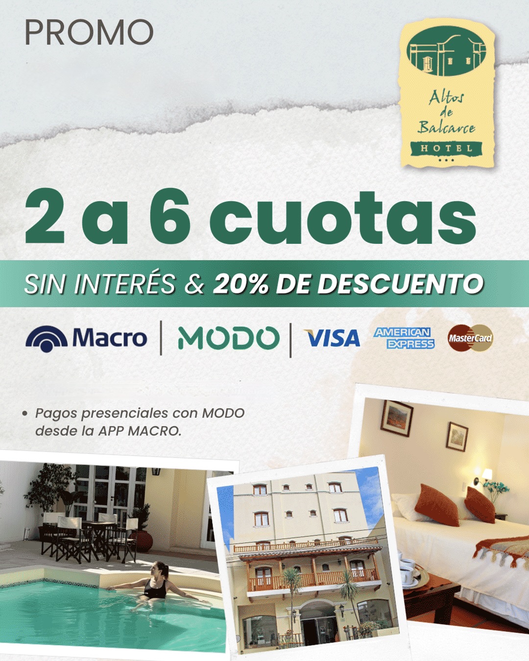 Hotel Altos de Balcarce es un hotel 3 estrellas ubicado sobre la tradicional Calle Balcarce, una de las zonas turísticas más destacadas de la ciudad.